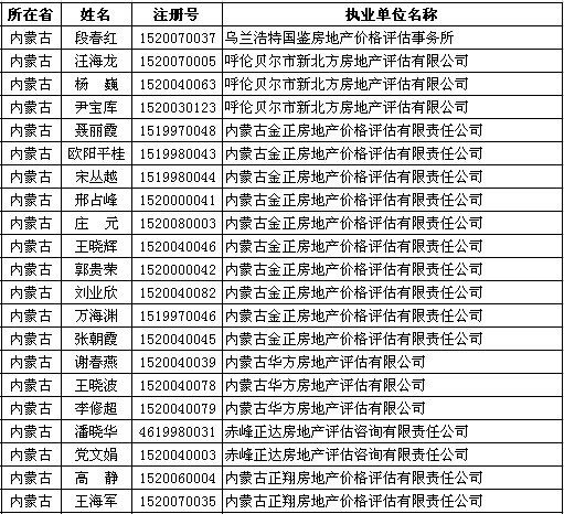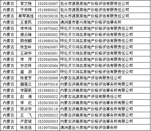 内蒙古房估师4月25日获准延续注册的人员名单