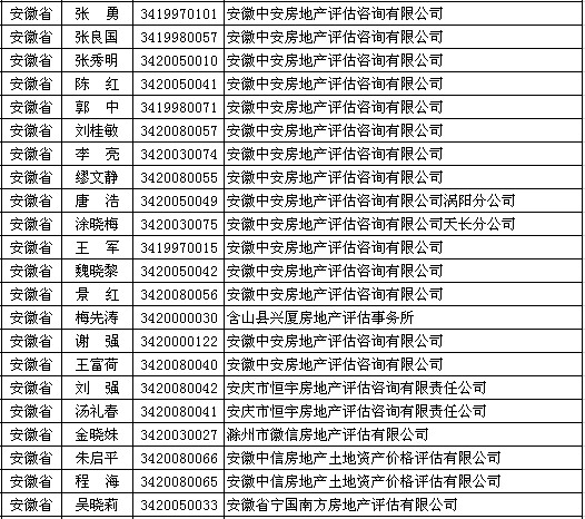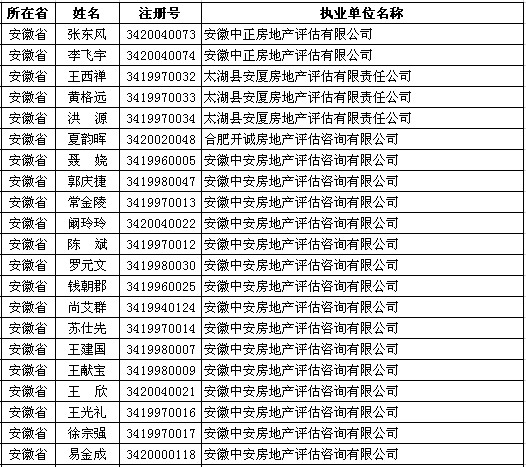 安徽房产估价师6月17日获准延续注册的人员名单