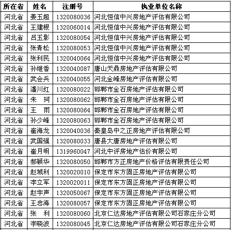 河北房产估价师7月8日获准延续注册的人员名单