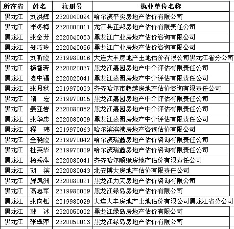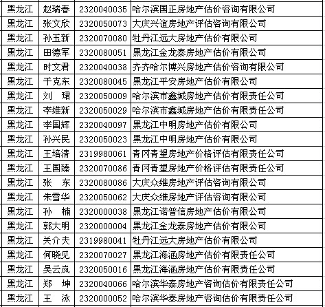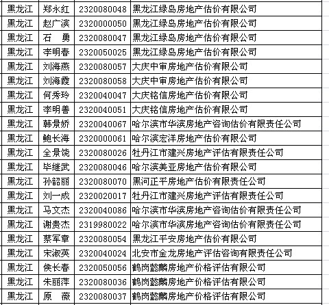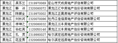 黑龙江房产估价师7月8日获准延续注册的人员名单