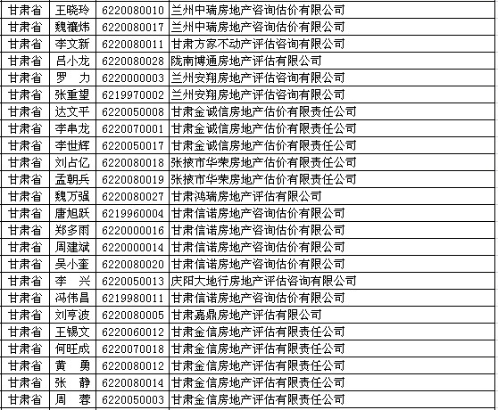 甘肃房产估价师8月17日获准延续注册的人员名单