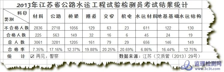号外!2013年江苏省公路水运检测员成绩统计分析