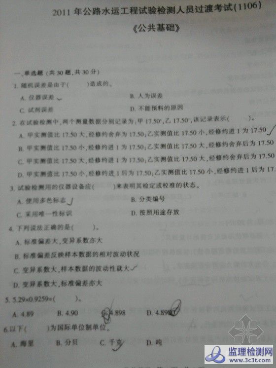 有标准答案的速度 传。。。。。我辛苦带出考场的 大家怎么也给捧捧场是吧