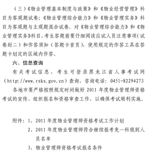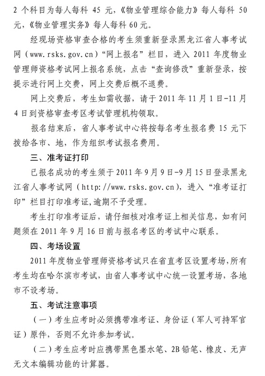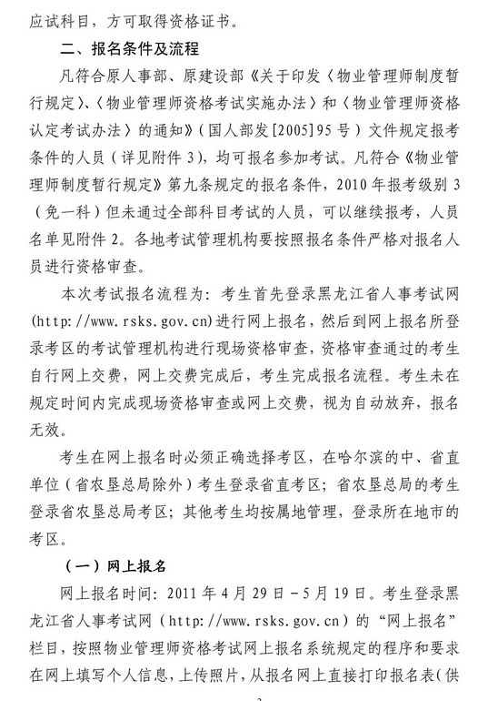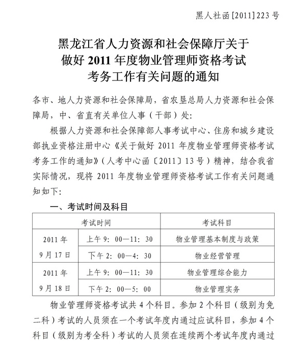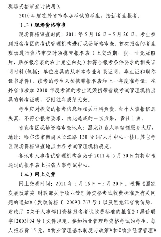 黑龙江省2011年物业管理师资格考试报名工作的通知