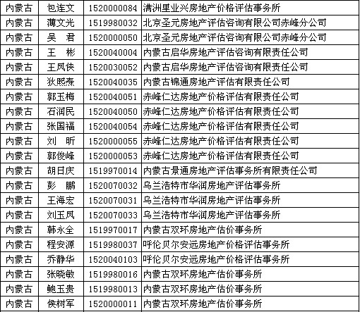 内蒙古房估师4月25日获准延续注册的人员名单