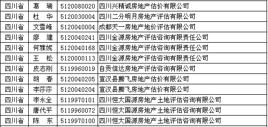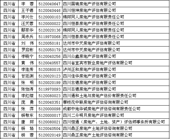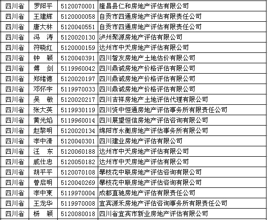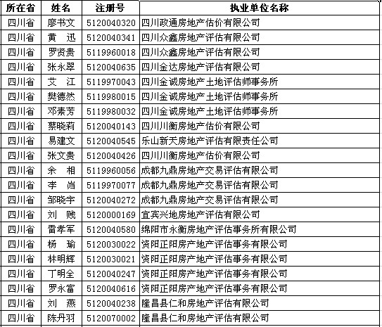 四川房产估价师5月11日获准延续注册的人员名单