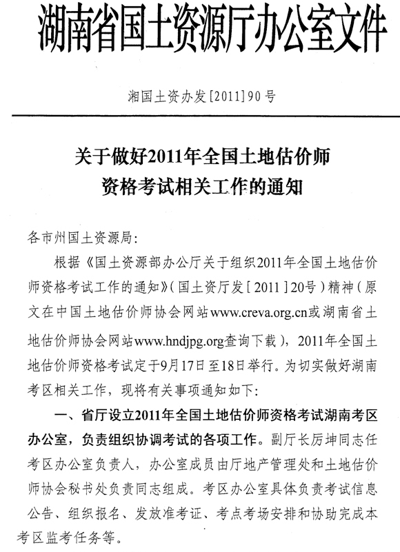湖南2011年土地估价师考试报名6月1日—7月15日