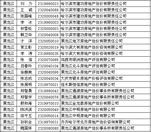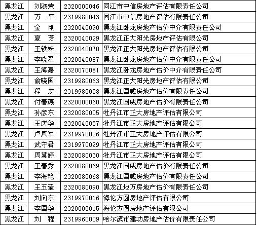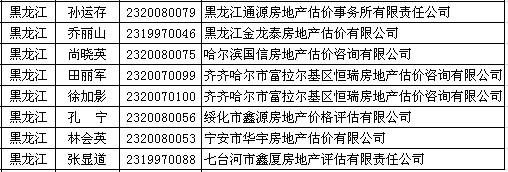 黑龙江房产估价师5月23日获准延续注册的人员名单
