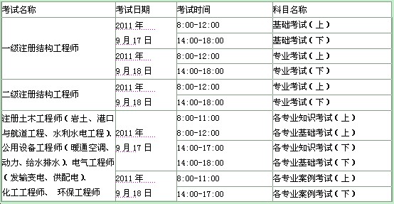 关于2011年度全国勘察设计注册工程师执业资格考试有关问题的通知