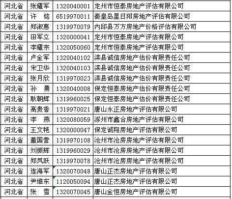 河北房产估价师7月8日获准延续注册的人员名单