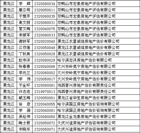 黑龙江房产估价师7月8日获准延续注册的人员名单