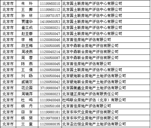 北京房产估价师7月27日获准延续注册的人员名单