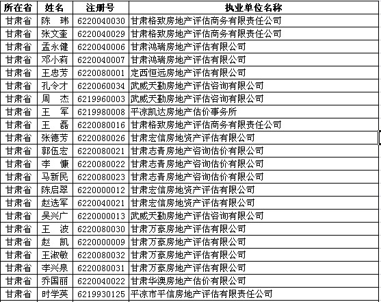 甘肃房产估价师8月17日获准延续注册的人员名单