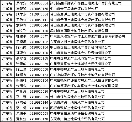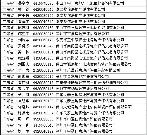 广东房产估价师9月6日获准延续注册的人员名单