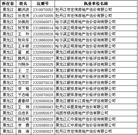 黑龙江房产估价师9月14日获准延续注册的人员名单